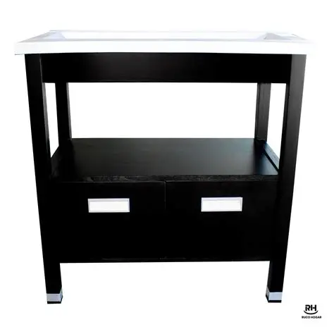 Con mesada para bacha de apoyo en melamina laqueada blanca en ambas posibilidades ( wengue)